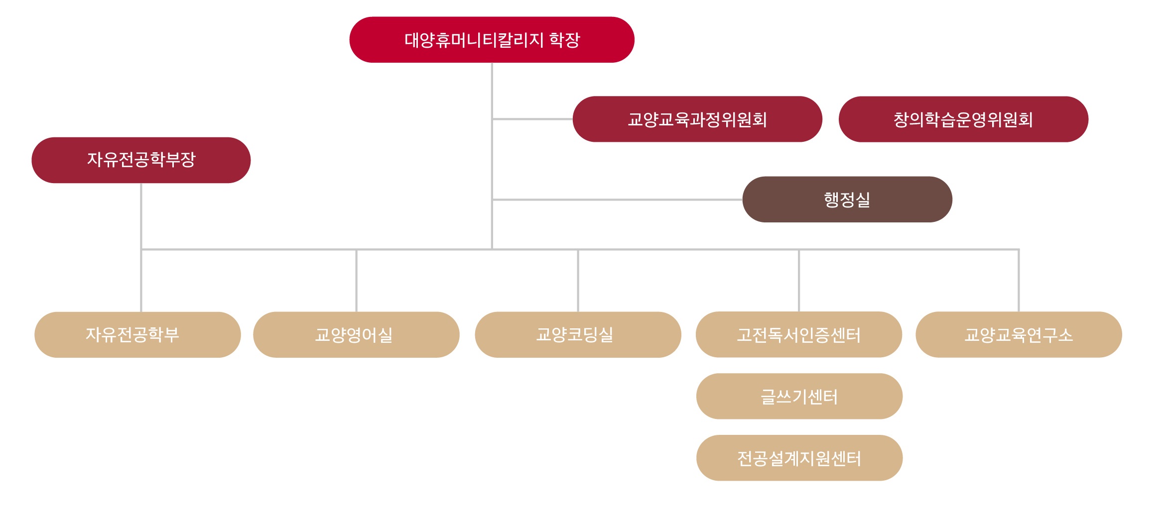 | 대양휴머니티칼리지 행정실 | 주진형 | 팀장 | 행정실 업무 총괄 교양교육과정 편성 |