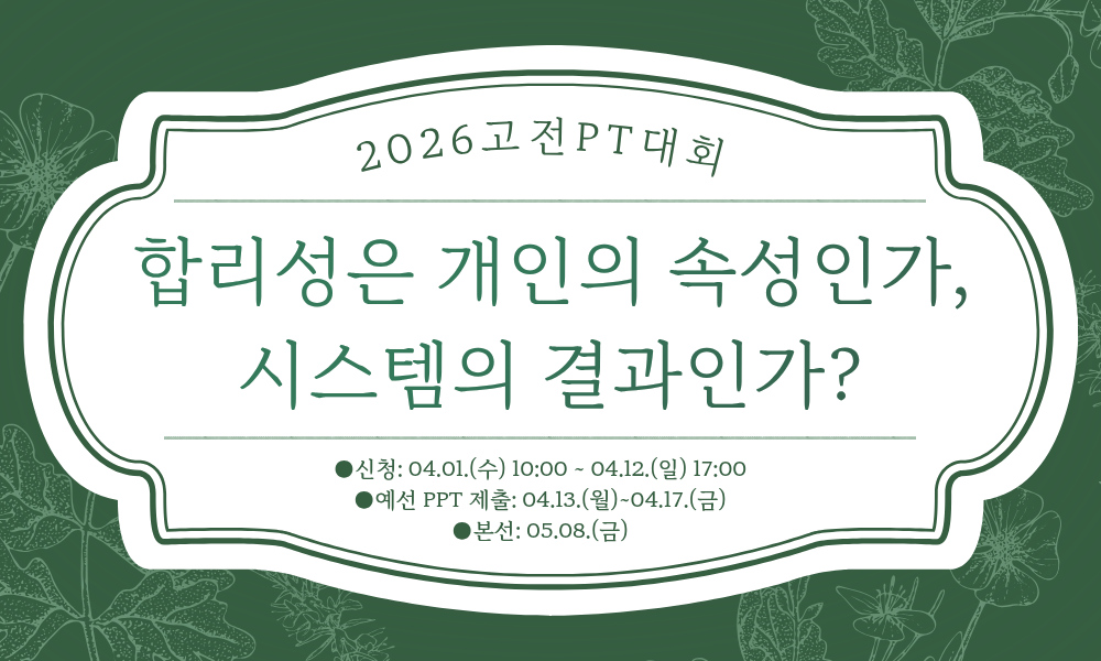 - 진행: 집현캠퍼스 [2026 고전PT대회]를 통해 안내