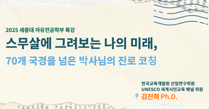 ย ์ง๋ 9์ 18์ผ(๋ชฉ), ์์ ์ ๊ณตํ๋ถ์์๋ “์ค๋ฌด์ด์ ๊ทธ๋ ค๋ณด๋ ๋์ ๋ฏธ๋, 70๊ฐ ๊ตญ๊ฒฝ์ ๋์ ๋ฐ์ฌ๋์ ์ง๋ก ์ฝ์นญ”์ด๋ผ๋ ์ฃผ์ ๋ก ํน๊ฐ์ด ์งํ๋์์ต๋๋ค. ย ํน๊ฐ์์๋ ๋ณํํ๋ ๊ธ๋ก๋ฒ ์ฌํ ์์์ ์๊ตฌ๋๋ ์ญ๋๊ณผ ํ๋, ์๊ธฐ ์ฑ์ฐฐ๊ณผ ๋นํ์ ์ฌ๊ณ ์ ์ค์์ฑ์ด ๊ฐ์กฐ๋์์ผ๋ฉฐ, ํ๋ฌธ์ ํ๊ตฌ์ ๊ฒฝํ์ ํตํด ์ค์ค๋ก์ ์ง๋ก๋ฅผ ์ค๊ณํ๋ ๋ฐฉ๋ฒ์ด ์๊ฐ๋์์ต๋๋ค. ํ์๋ค์ ์ด๋ฒ ํน๊ฐ์ ํตํด ๋ฏธ๋๋ฅผ ์ค๋นํ๋ ๋ฐ ํ์ํ ๋ค์ํ ํต์ฐฐ๊ณผ ๋ฐฐ์์ ์ป์ ์ ์์์ต๋๋ค. ย ํน๊ฐ ํ์ฅ ์ฌ์ง์ ์๋์ ๊ฒ์ํ์ค๋ ๋ง์ ๊ด์ฌ ๋ฐ๋๋๋ค.